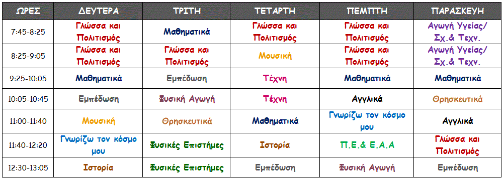 Ωρολόγιο Πρόγραμμα Μαθημάτων Ε2